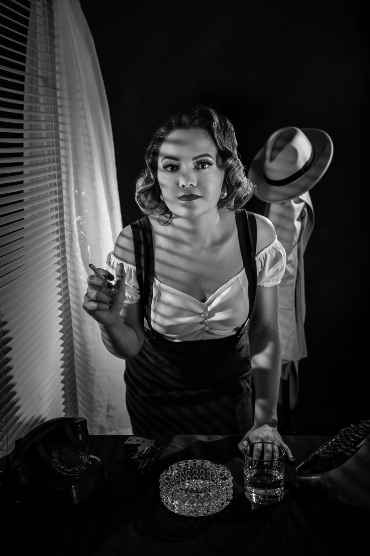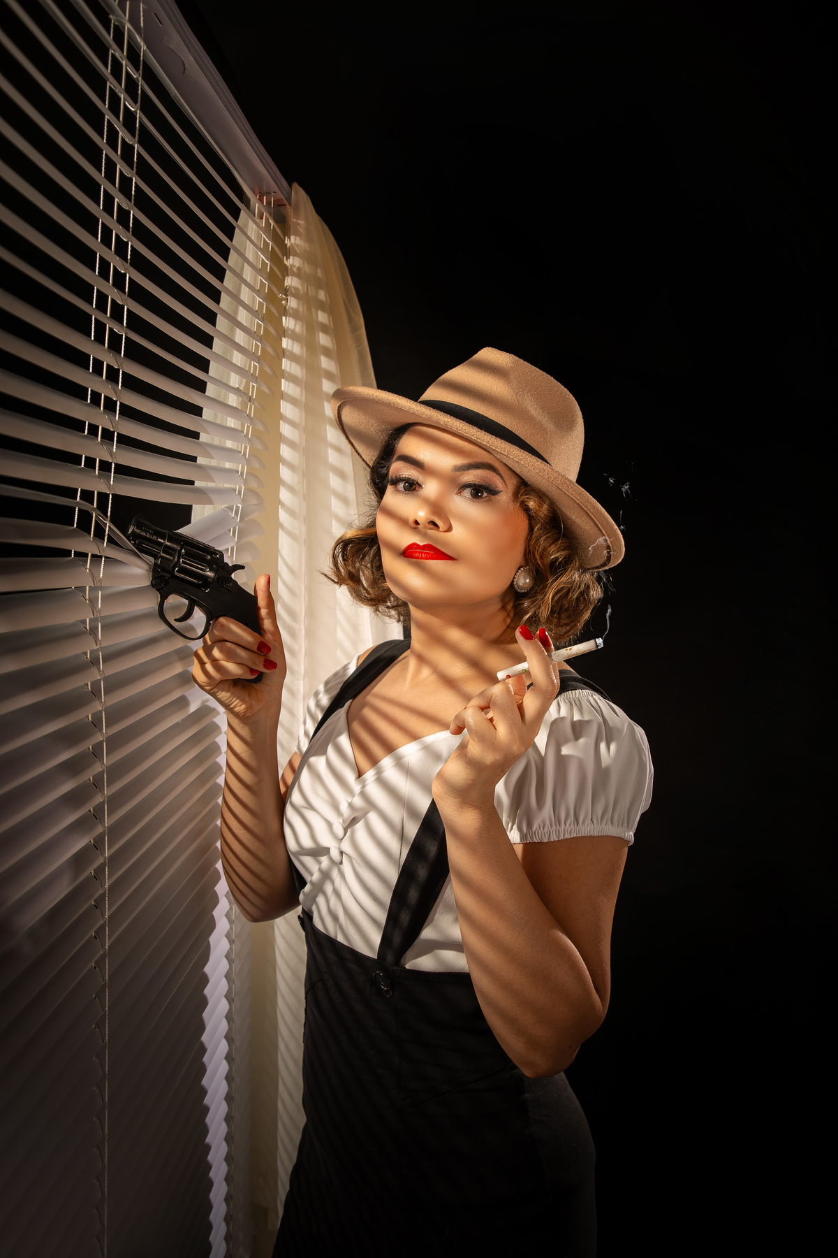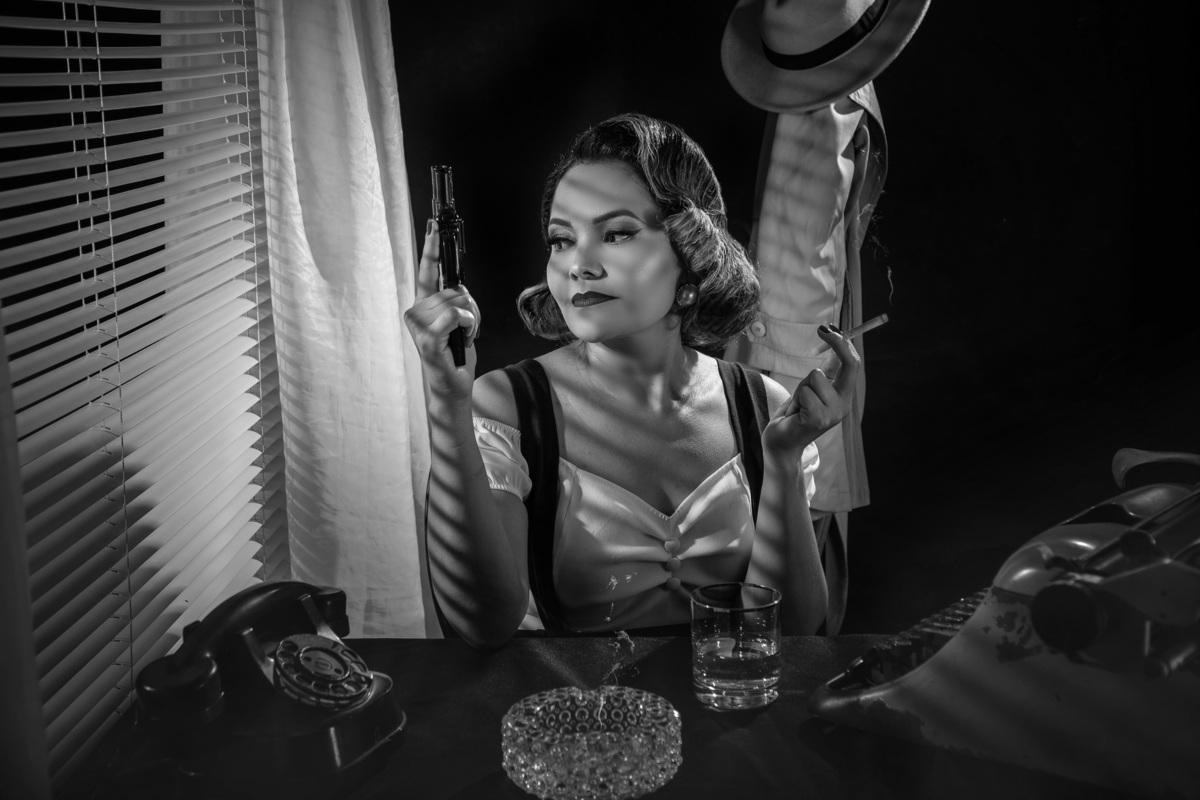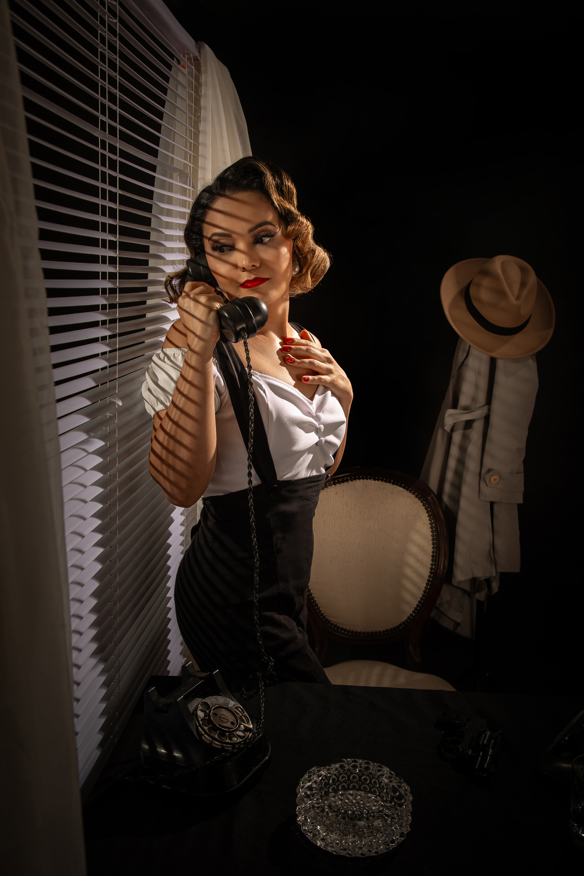 Ensaio fotográfico film noir realizado no estudio renata candido no ipiranga, são paulo. inspirado nos filmes antigos de hollywood dos anos 40 e 50, os pacotes incluem maquiagem, penteado e figurino pela equipe especializada.