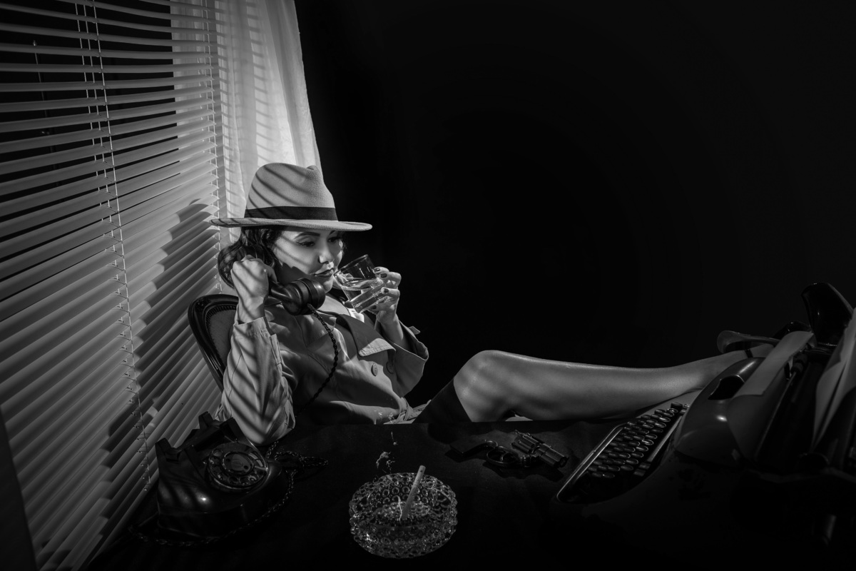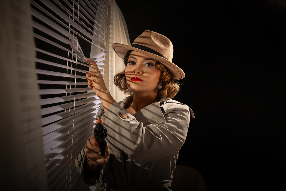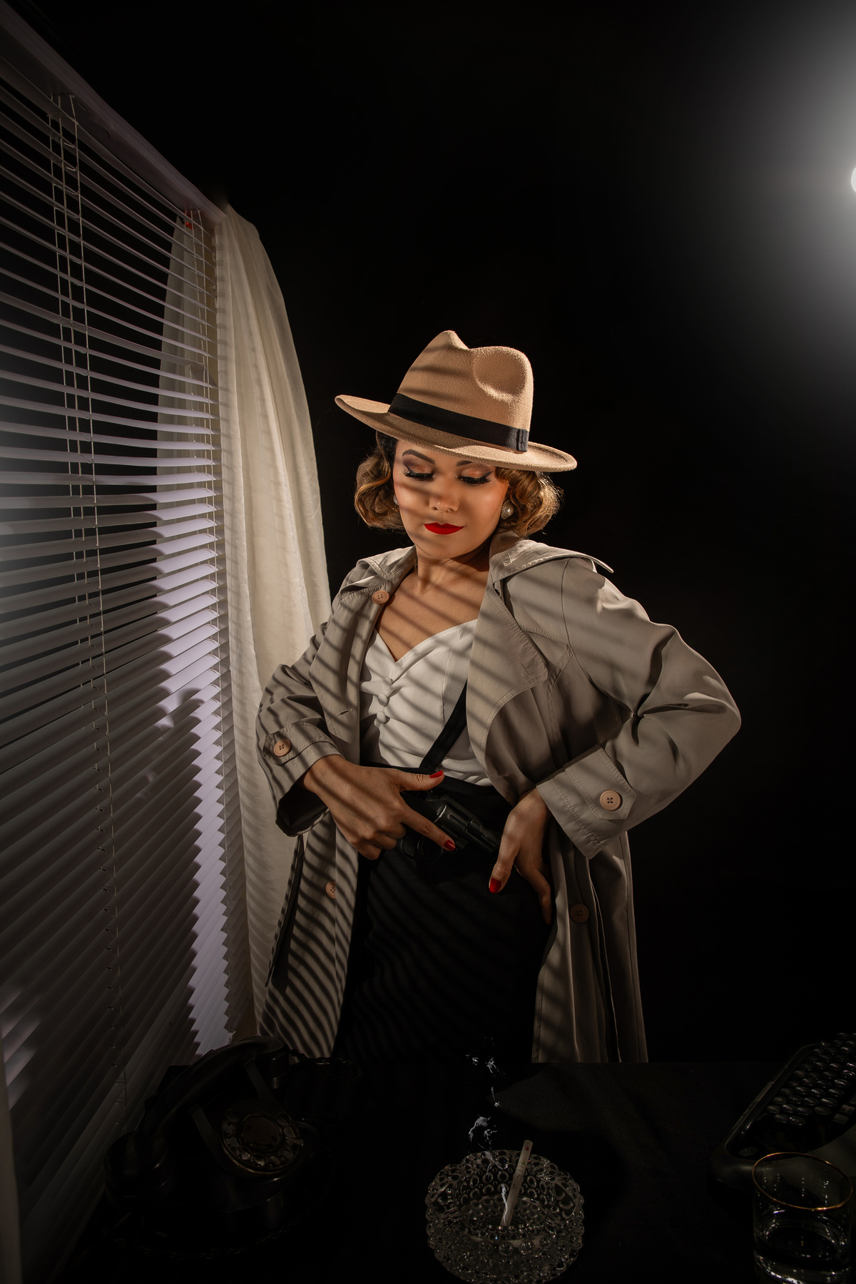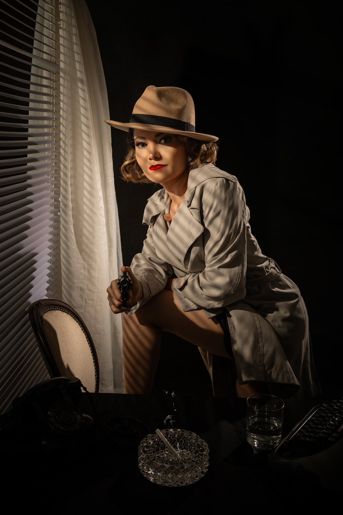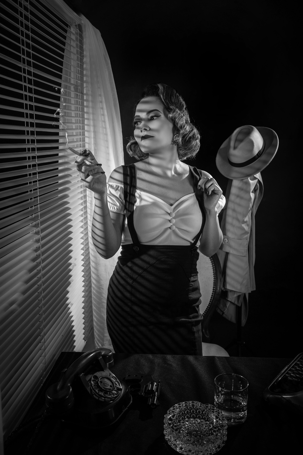 Ensaio fotográfico film noir realizado no estudio renata candido no ipiranga, são paulo. inspirado nos filmes antigos de hollywood dos anos 40 e 50, os pacotes incluem maquiagem, penteado e figurino pela equipe especializada.