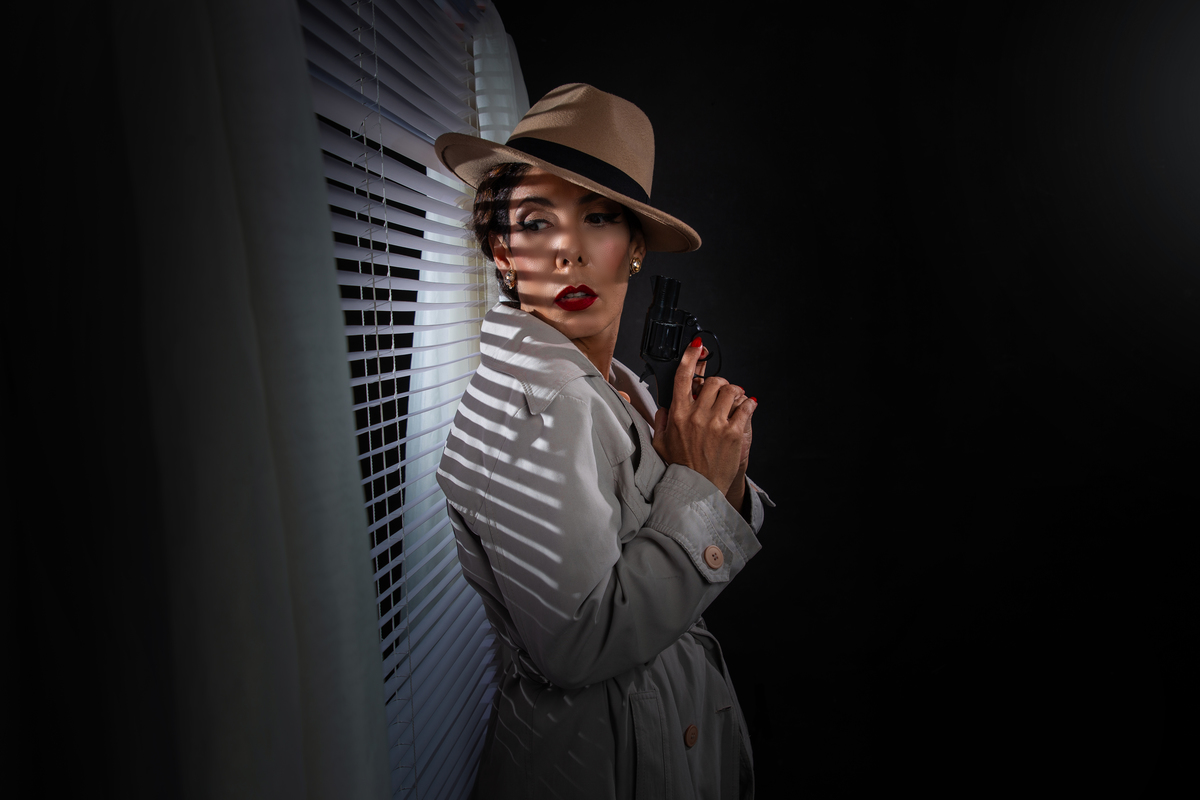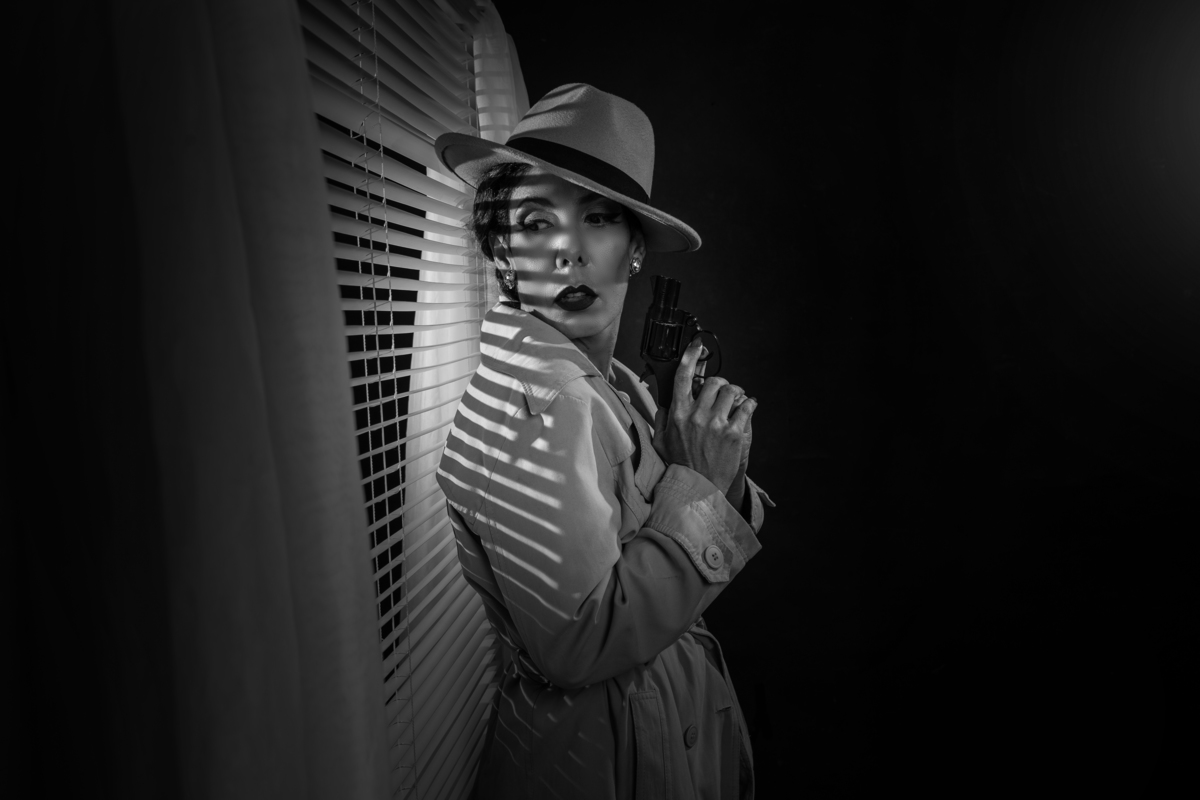 Ensaio fotográfico film noir realizado no estudio renata candido no ipiranga, são paulo. inspirado nos filmes antigos de hollywood dos anos 40 e 50, os pacotes incluem maquiagem, penteado e figurino pela equipe especializada.