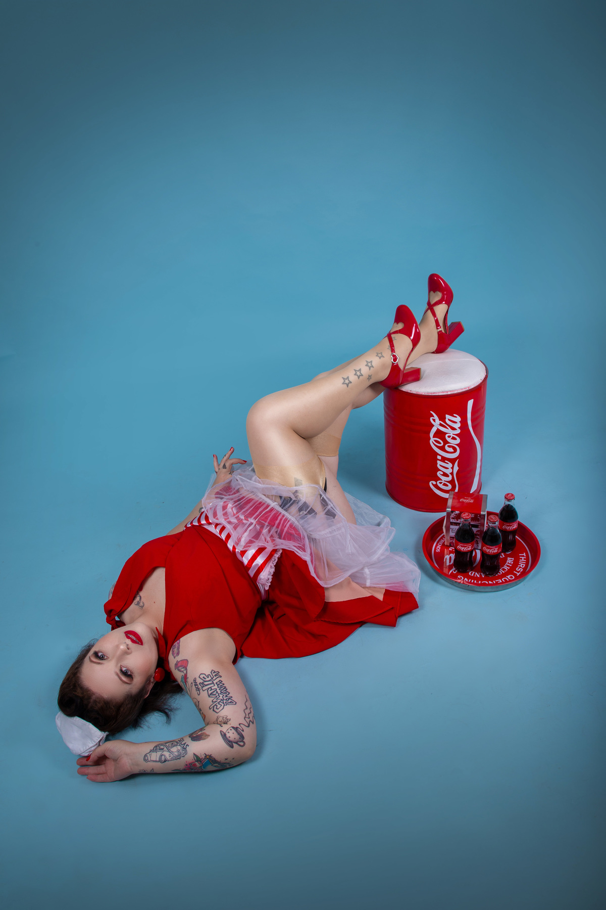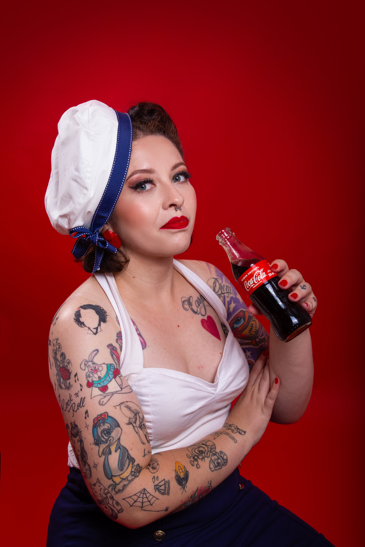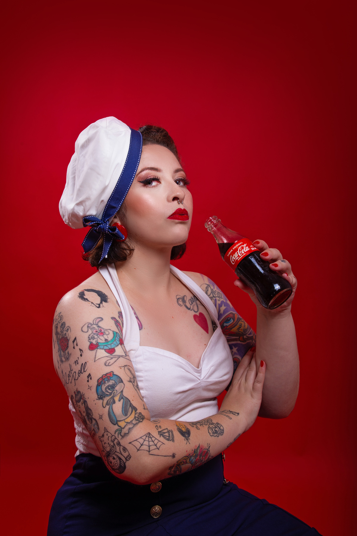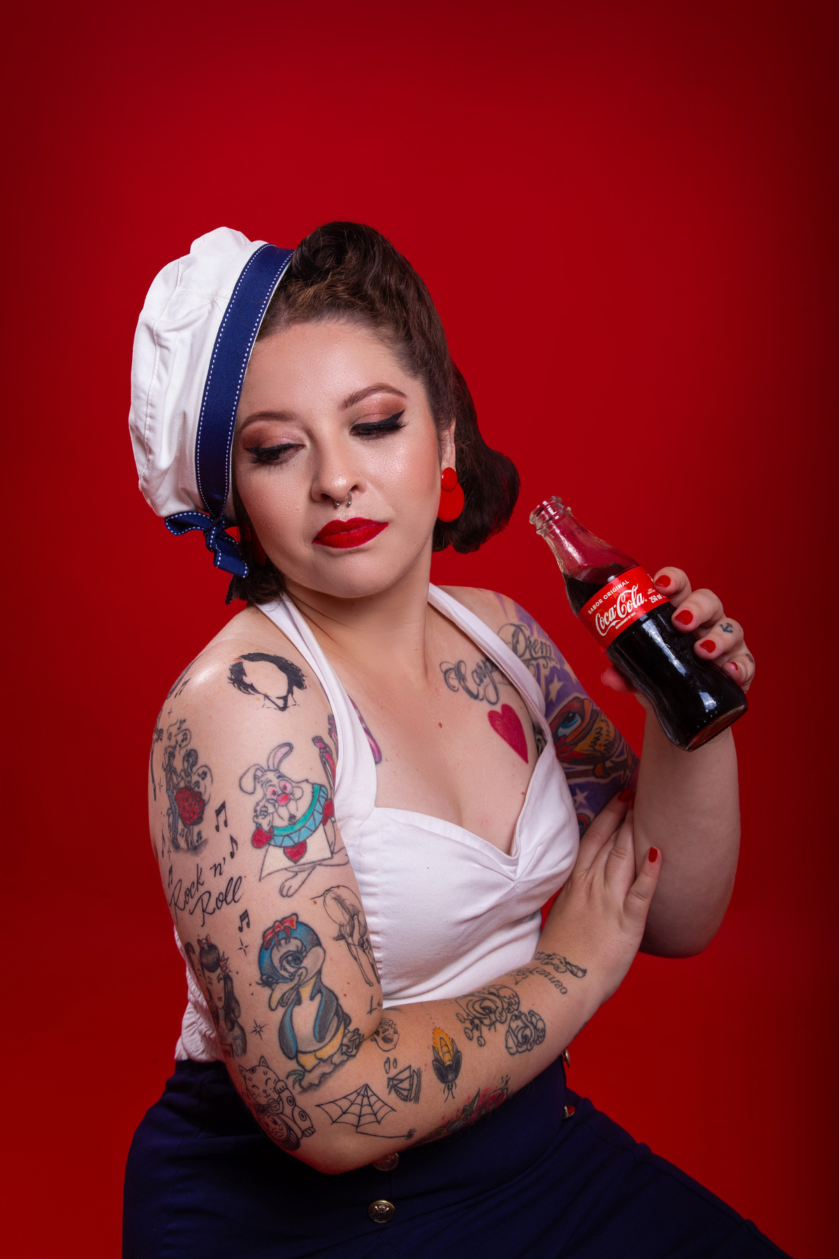 Ensaio inspirado na coca-cola para Mariana, que optou por um vestido vermelho Gessica Rouse & Acessórios de lanchonete! No 2o figurino, usamos um look nautico, inspirado nas propagandas antigas da Coca-cola.